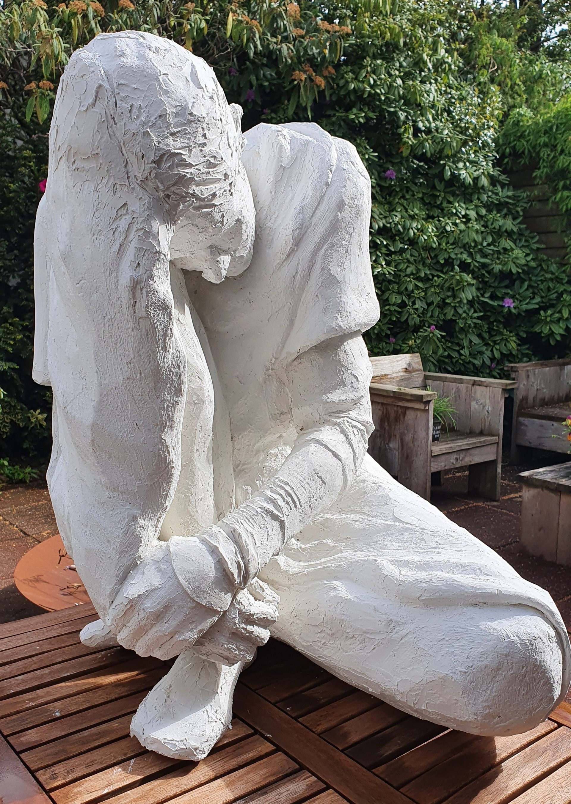 '' Zondagochtend bezocht ik de beeldentuin in mijn woonplaats Cuijk om de nieuwe aanwinsten te bekijken. Ik werd getroffen door het beeld Contemplatie en heb er een gedicht bij gemaakt.